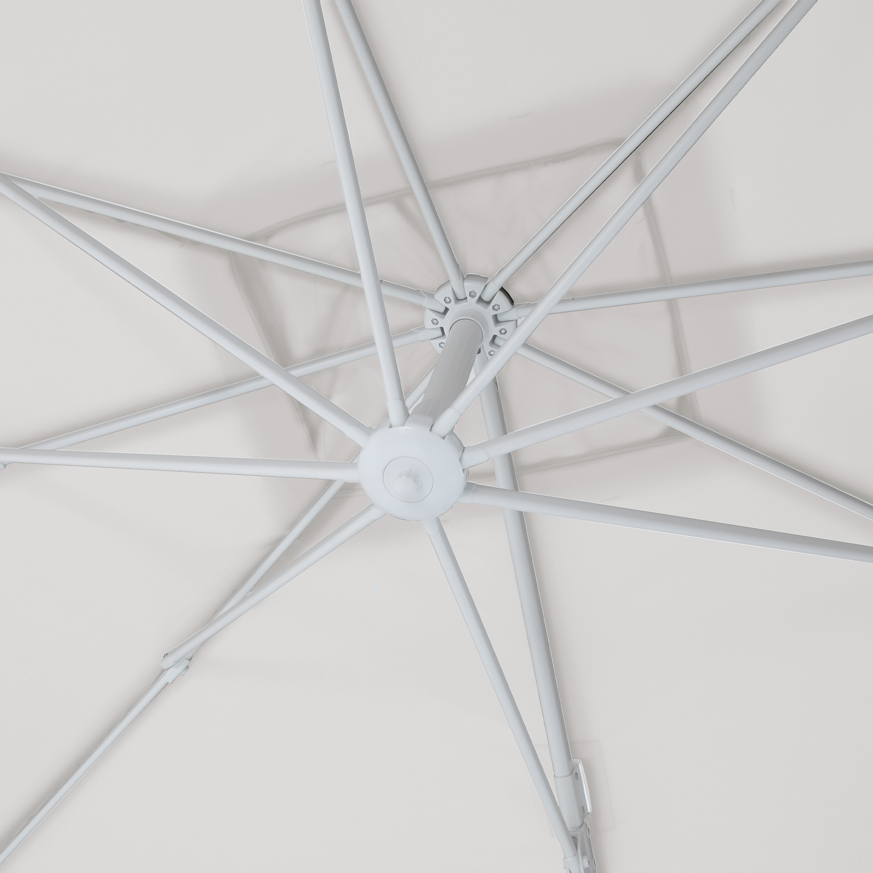 Det robuste stel på den flydende parasol er lavet af holdbart pulverlakeret aluminium, der gør den immun over for rust. Coco flydeparasol har et tykt stel, der giver den masser af robusthed, ideelt til placering i haver, hvor der normalt er mere vind. Denne flydende parasol kan drejes 360 grader, kan vippes og åbnes uden besvær takket være svingmekanismen.
