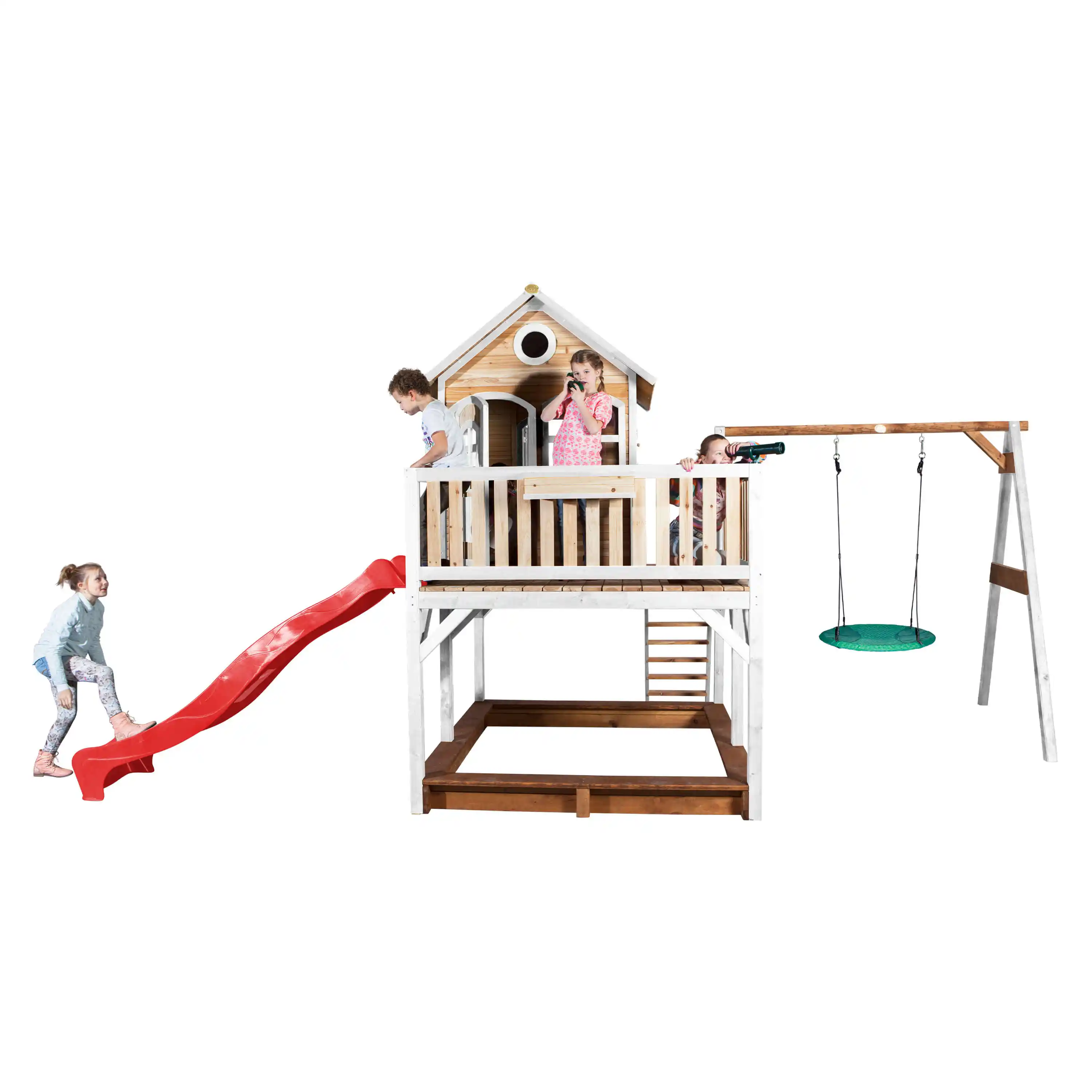 AXI Liam Legehus med Summer Rede Gynge Brun/Hvid - Rød Rutsjebane