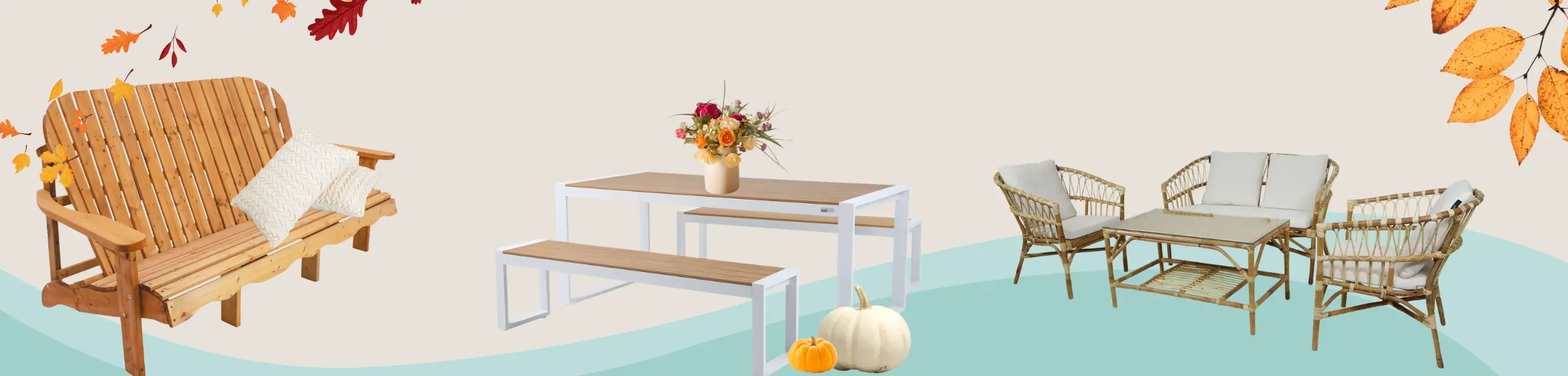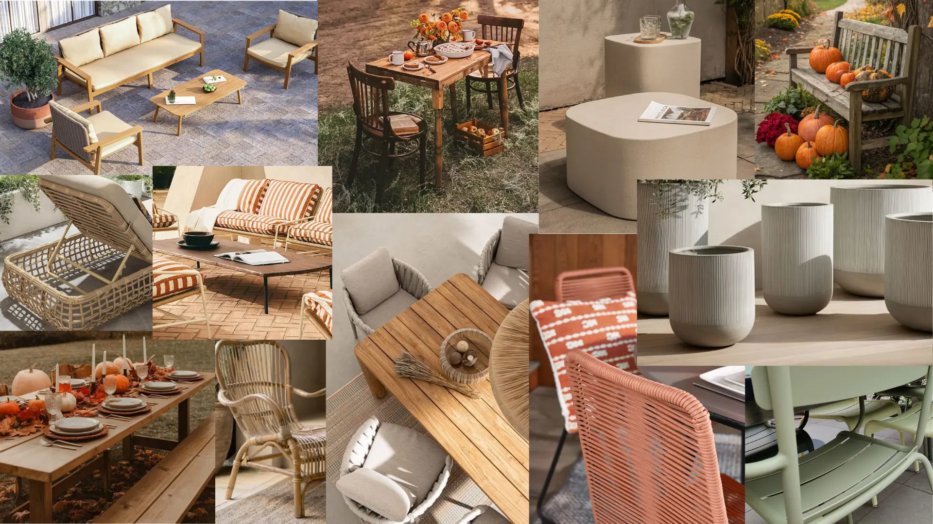 Efterårets farver udstråler ro og varme. Havemøbler i jordfarver som taupe, beige, sandy beige, terre og varm terracotta er på trend. Disse nuancer kombineres smukt med blid grøn for en naturlig balance, og accenter i bronze tilføjer et luksuriøst touch.
