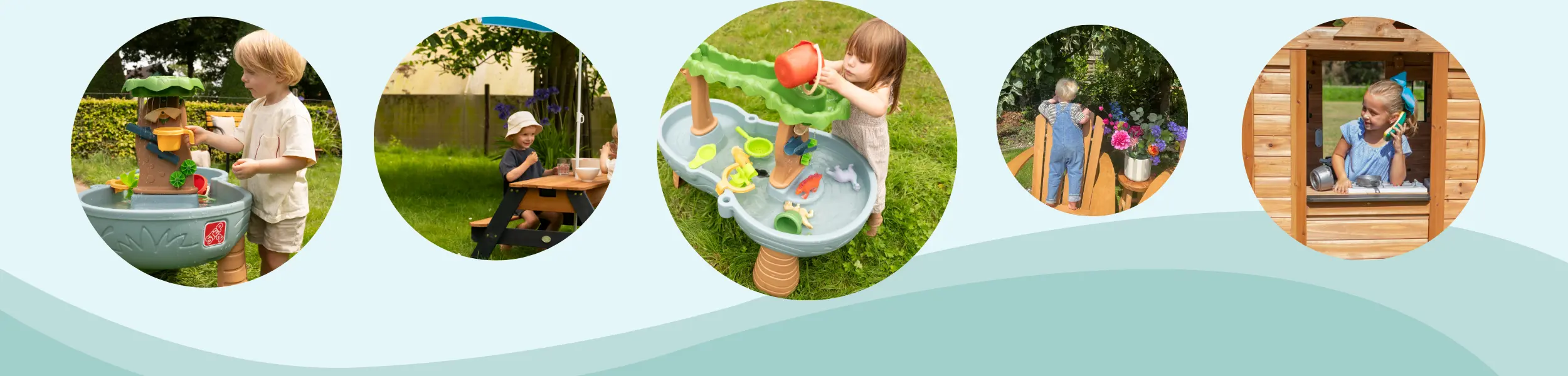 Sandkasser er stadig populære om sommeren. Her kan børn grave, bygge og "lave mad" med sand og mudder. Til de lidt større børn er planteborde en sjov måde at lære om planter og grøntsager på. Giv dem deres egen lille køkkenhave og lad dem vande og høste selv.