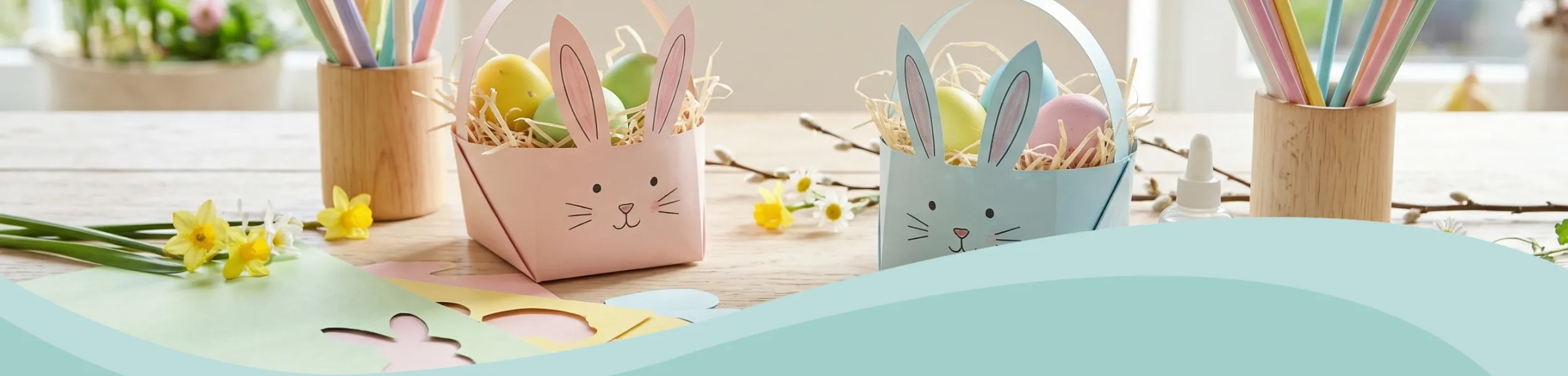 Med en printbar skabelon bliver det endnu nemmere. Du printer skabelonen, klipper kurven ud og samler den hurtigt. På få minutter har du en fin og stabil kurv klar til påskeæggejagten.